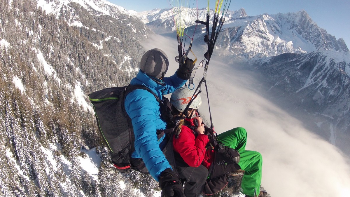 L'hiver (décembre à février) est la saison la plus challenging, mais possible dans certaines régions. À Chamonix, les conditions sont stables et ensoleillées, avec des thermiques doux formés par le soleil sur la neige, idéales pour les débutants (fenêtre de vol 11h-16h). Les vols en tandem sont faisables toute l'année, et ce n'est pas plus froid que skier.